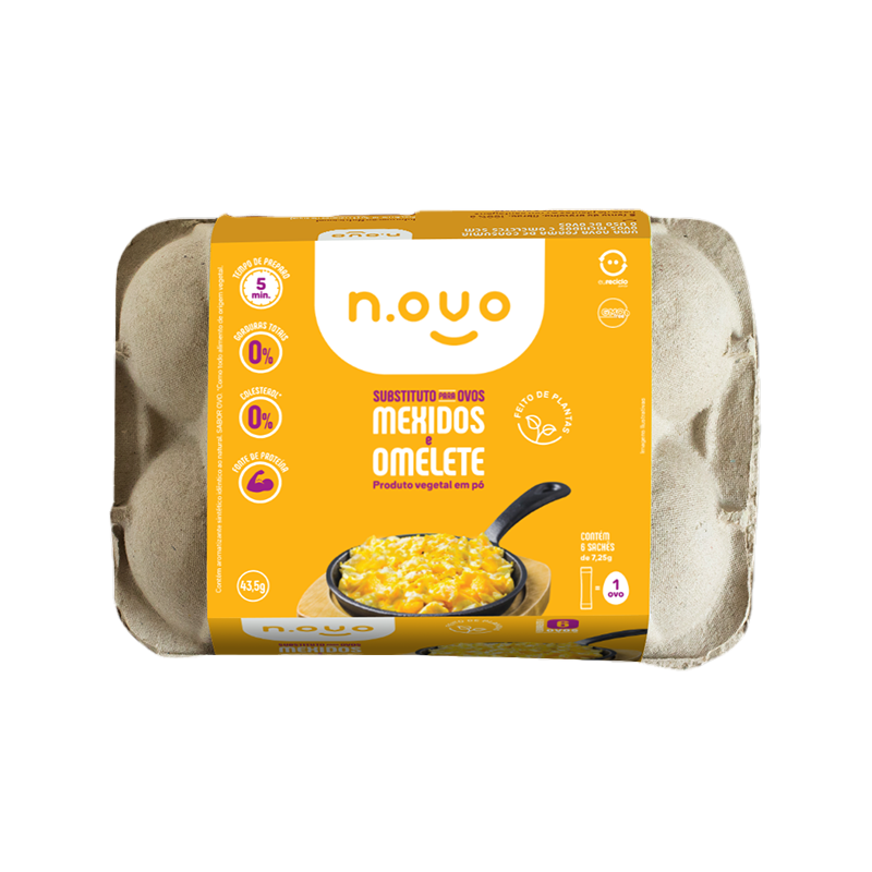 Já o N.OVO Mexido é um produto em pó, 100% feito à base de vegetais e substitui os ovos convencionais em omeletes e ovos mexidos.